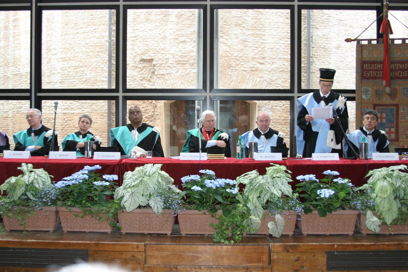 Il 21 giugno 2004, nell’aula absidale di Santa Lucia, si è tenuta la cerimonia per il conferimento della laurea honoris causa in Lingue e Letterature Straniere allo scrittore martinicano Édouard Glissant, autore de “Il quarto secolo”, libro che, nel gennaio 2003, ha ottenuto il premio Grinzane Cavour per la narrativa straniera, e la laurea in Giurisprudenza al prof. Domenico Maffei, professore emerito di Storia del diritto italiano, luminare della Storia del diritto Medievale. Nella sua opera Maffei si è dedicato anche a quei Giusti bolognesi grazie ai quali, come ha ricordato il Rettore prof. Pier Ugo Calzolari, "l'Università ha contribuito alla genesi della civiltà che oggi ci appartiene".