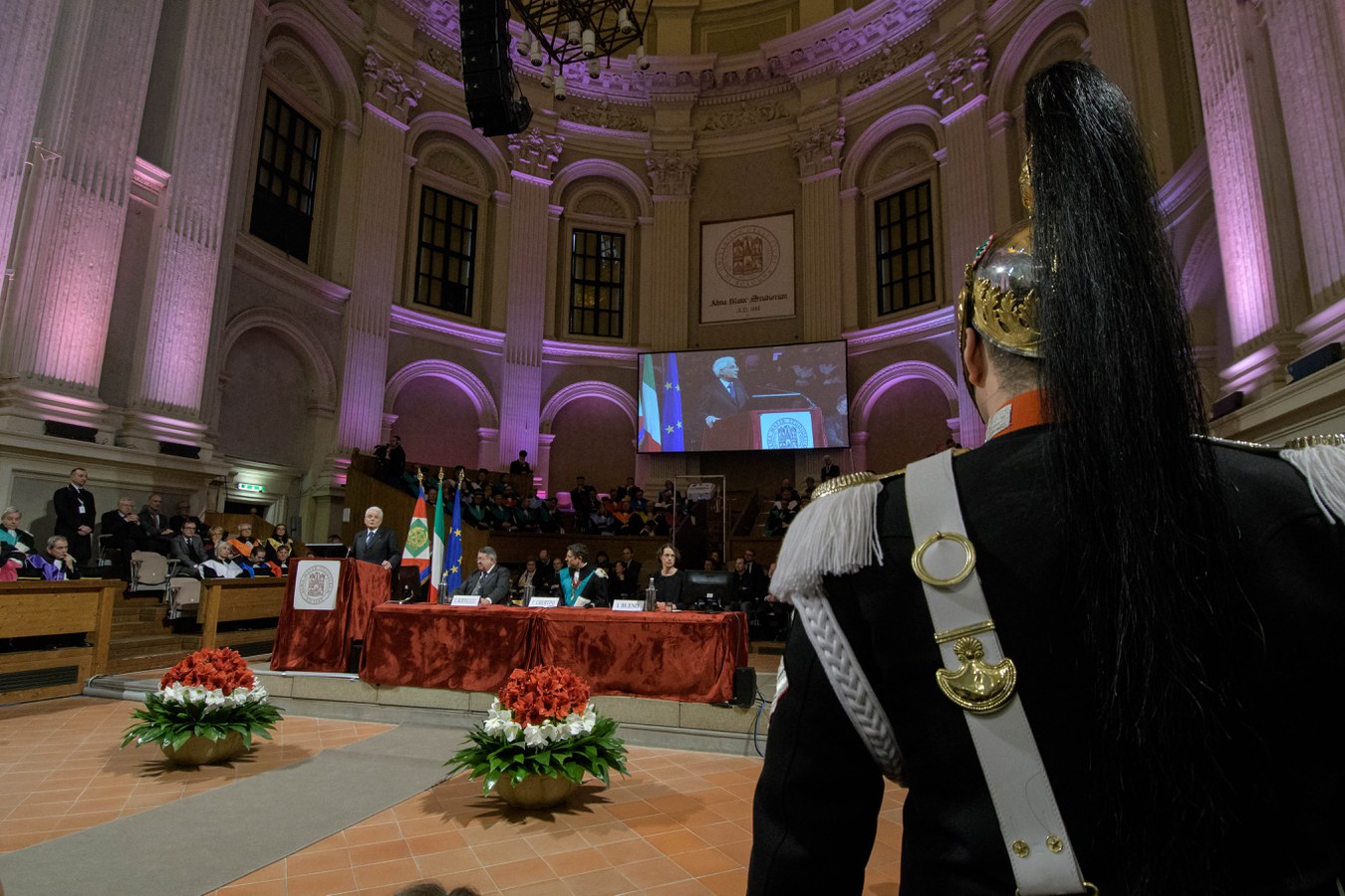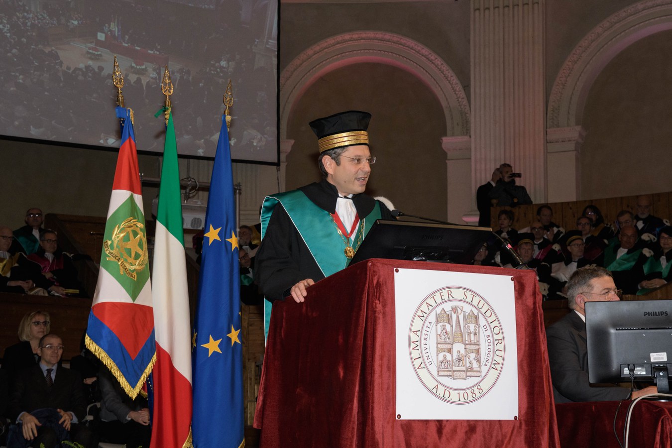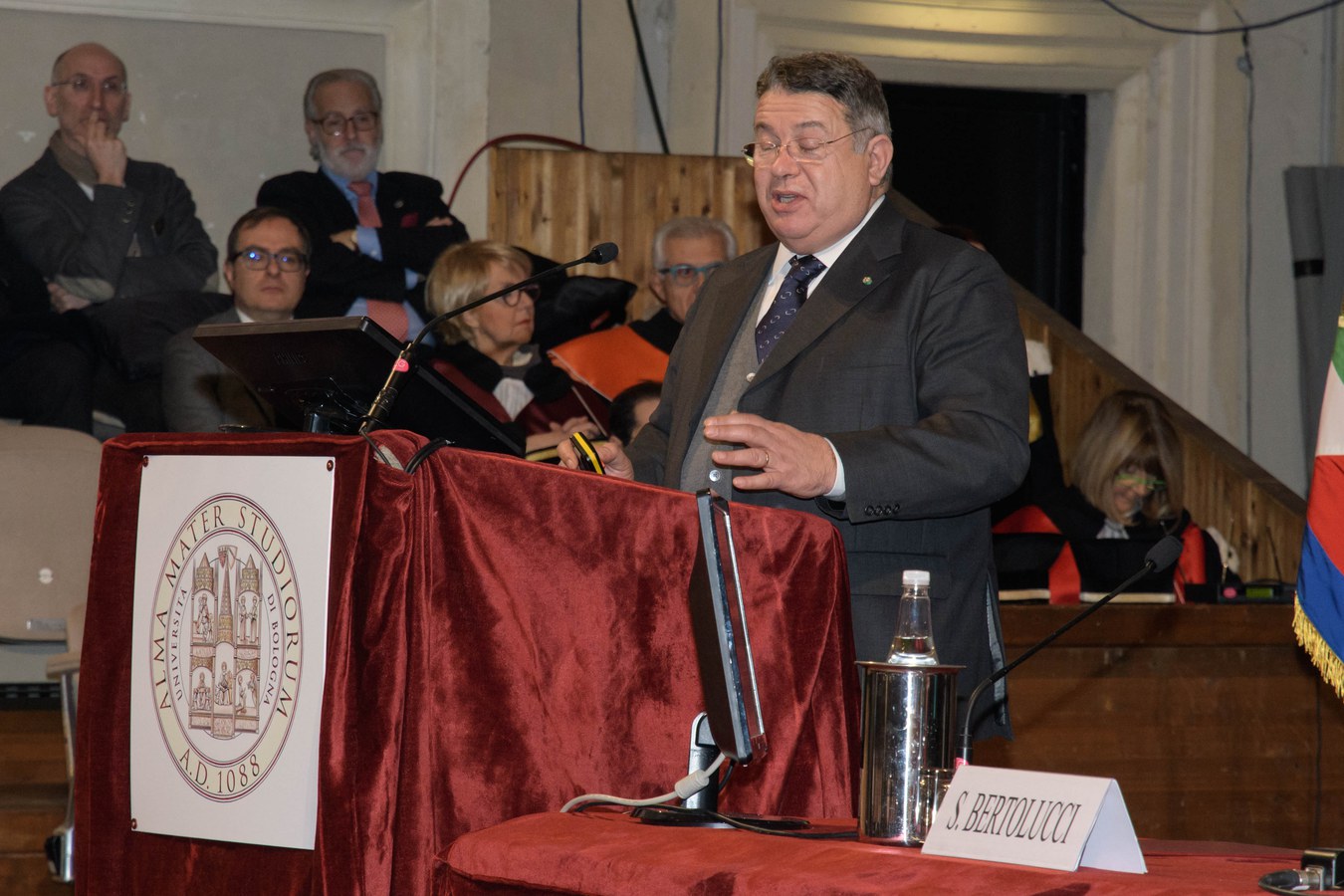 Il Rettore Francesco Ubertini ha inaugurato la cerimonia ricordando, nel suo discorso, le antiche origini dell'Alma Mater, nata nelle piazze della città di Bologna, dalla quale sono passati illustri personaggi e professori come Giosuè Carducci e dove è nata, nel 1988, la Magna Charta Universitatum.