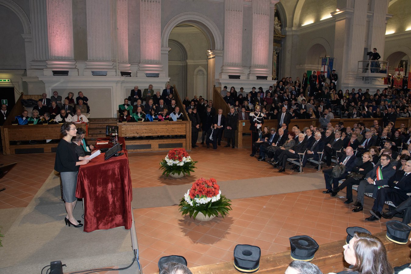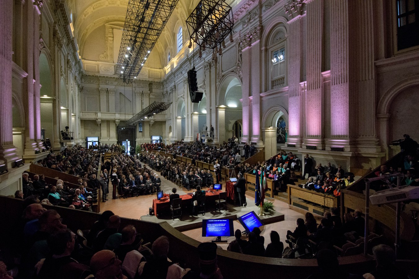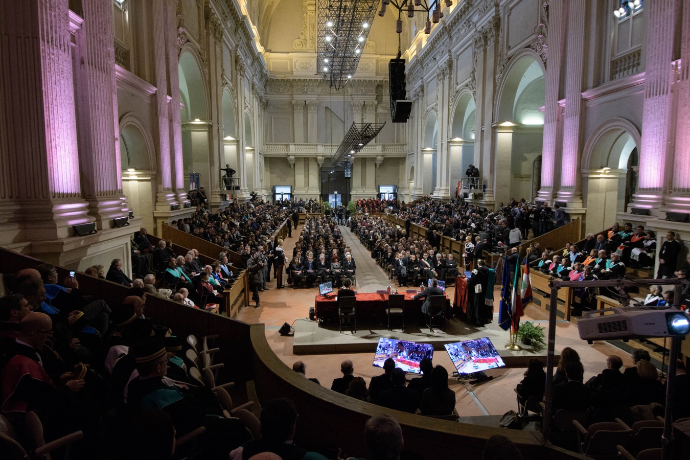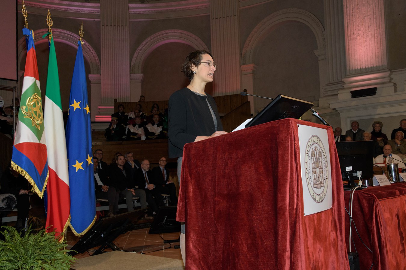 Il Rettore Francesco Ubertini ha inaugurato la cerimonia ricordando, nel suo discorso, le antiche origini dell'Alma Mater, nata nelle piazze della città di Bologna, dalla quale sono passati illustri personaggi e professori come Giosuè Carducci e dove è nata, nel 1988, la Magna Charta Universitatum.