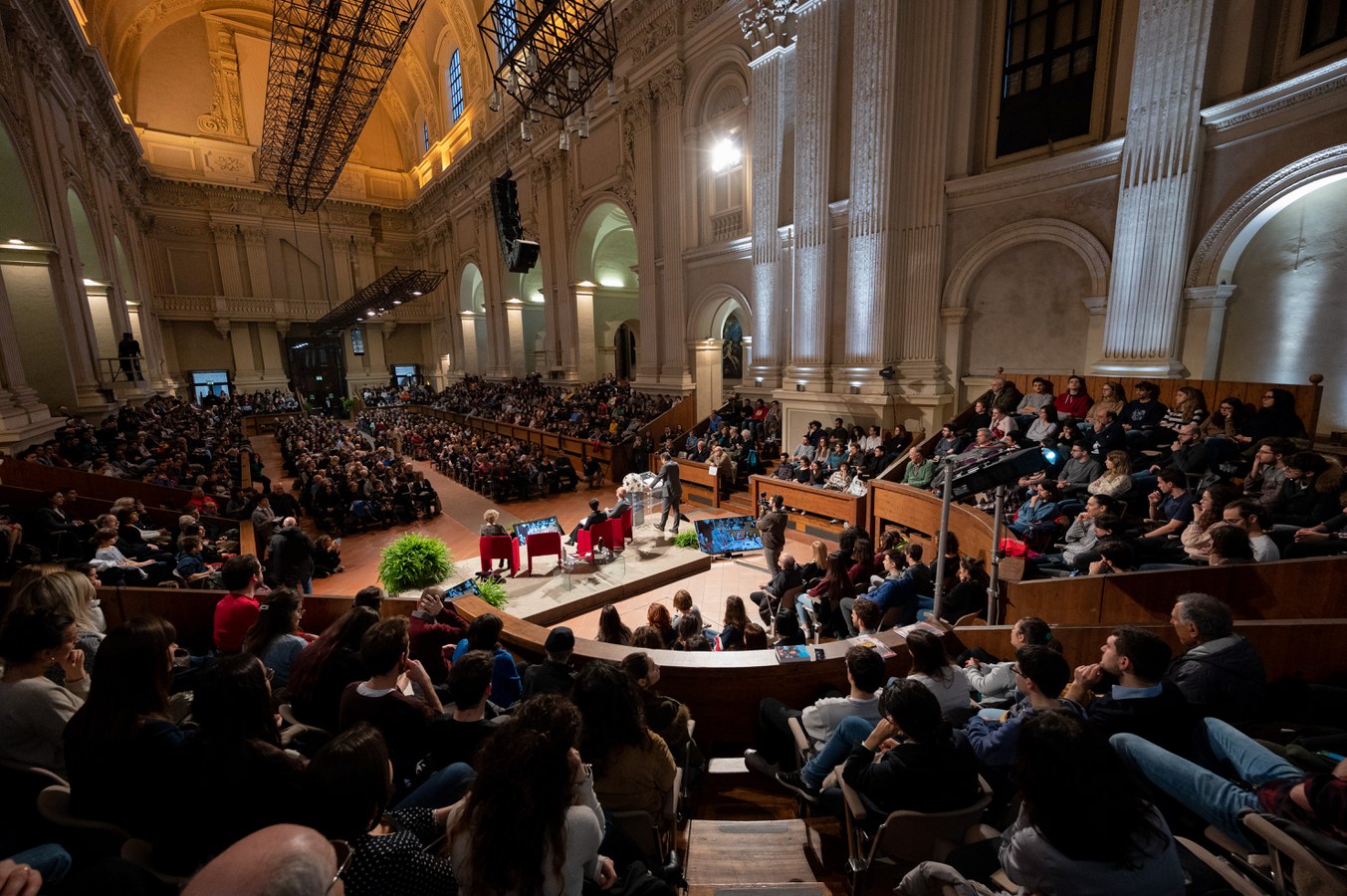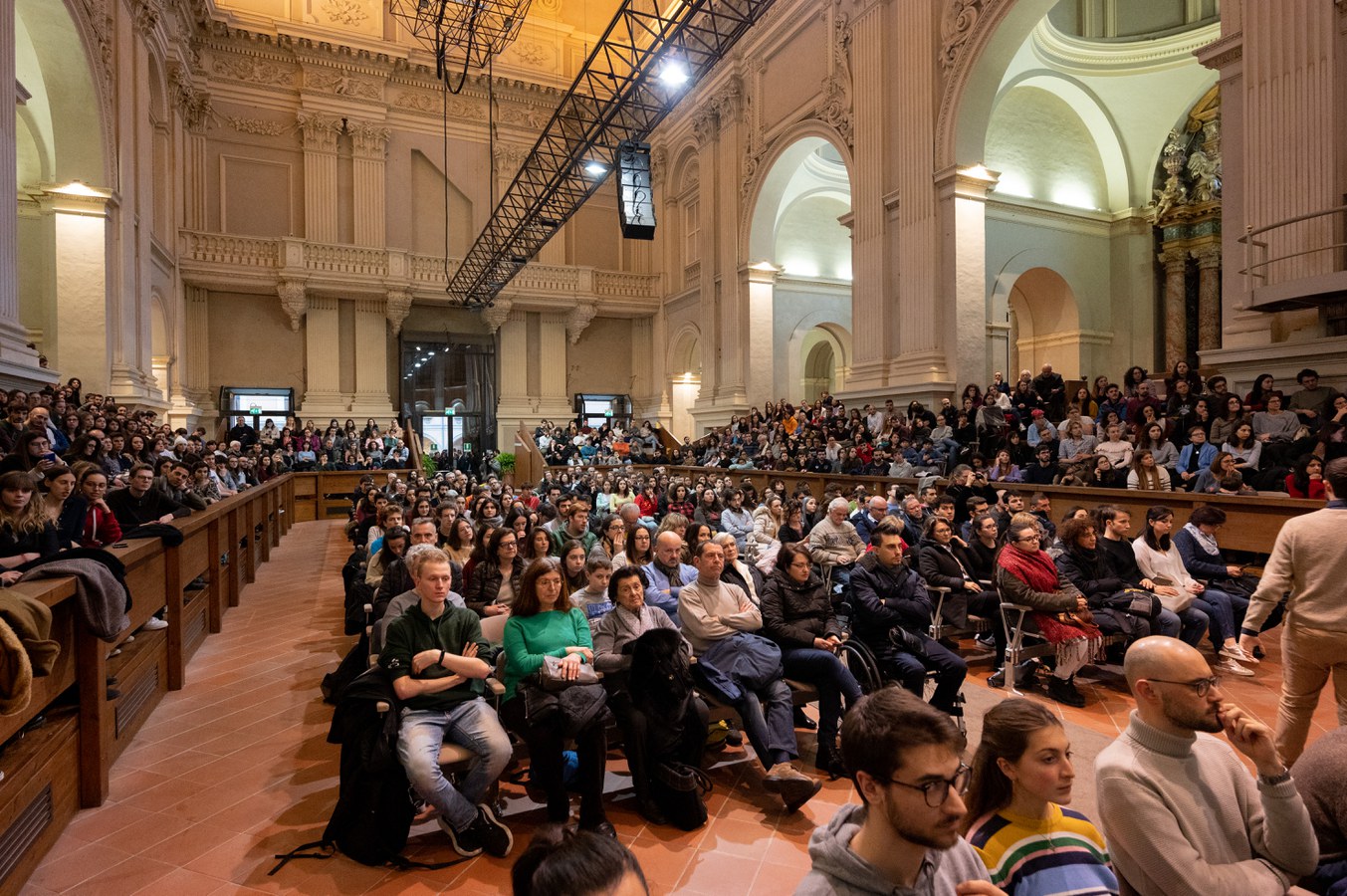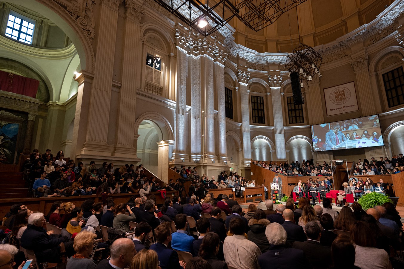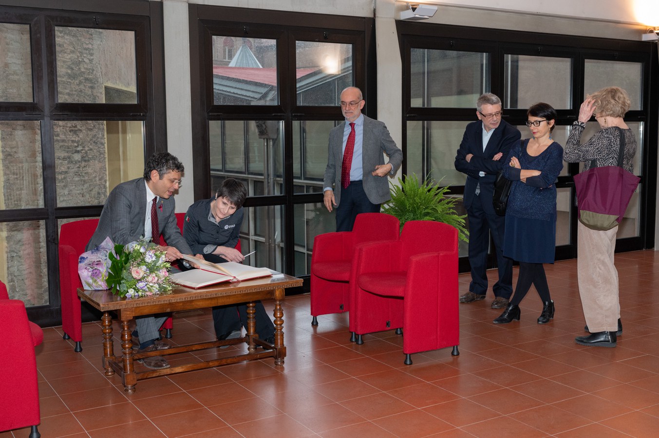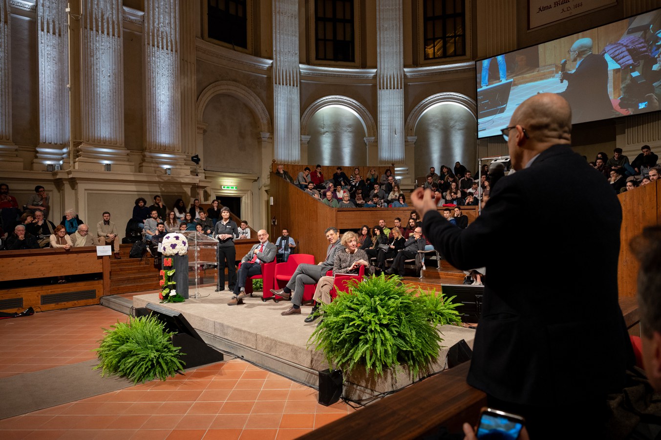 Dopo i saluti di apertura del Rettore Francesco Ubertini, e una breve presentazione da parte dell’ex-Direttore del Centro “Umberto Eco”, Patrizia Violi, e dell’attuale Direttore, Costantino Marmo, Samantha Cristoforetti ha raccontato la sua esperienza di astronauta.