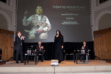 Marina Abramovic commenta di persona e per la prima volta al pubblico italiano, il suo ultimo lavoro, "Seven Easy Pieces", con la moderazione del critico d’arte Renato Barilli. L'evento è promosso dall’Università di Bologna nell’ambito di Arte Fiera 2011 ed è curato da Renato Barilli. L’iniziativa è realizzata grazie alla collaborazione della Cineteca di Bologna e della Galleria Lia Rumma di Milano e gode dei contributi di Illy e della Fondazione del Monte di Bologna e Ravenna.