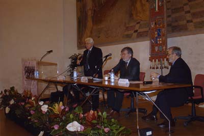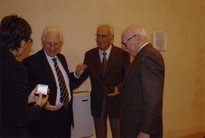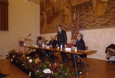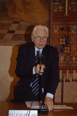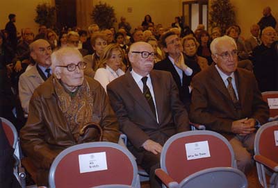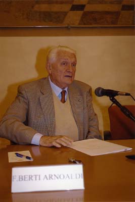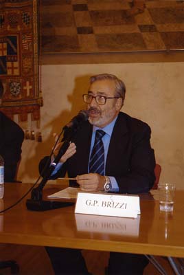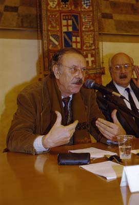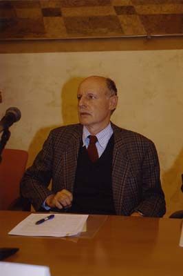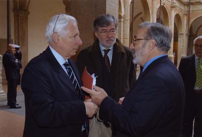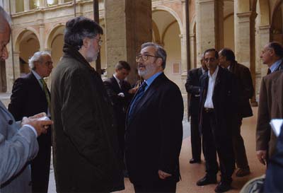 , Sindaco di Bologna, <br>nel cortile del Dipartimento di Storia Culture Civiltà<br>mentre si dirige verso l'aula Prodi.Incontro di studio in occasione del 60° anniversario della battaglia dell’Università (20 ottobre 1944). L'incontro, promosso dall'Archivio Storico dell'Università di Bologna a memoria del sacrificio dei partigiani che il 20 ottobre 1944 furono uccisi all'interno dell'Alma Mater, durante quella che fu chiama la "Battaglia dell'Università", tratterà del ruolo dei giovani nelle lotte di Liberazione, non solo quella partigiana. A corredo dell'iniziativa è stata inaugurata la mostra fotografica dal titolo "L'Università nella lotta partigiana. Dalla battaglia (20 ottobre 1944) alla liberazione dell'Ateneo (21 aprile 1945)", aperta dal 20 ottobre al 15 novembre 2004 nel chiostro di San Giovanni in Monte, con alcuni scatti inediti presi durante quei fatti.