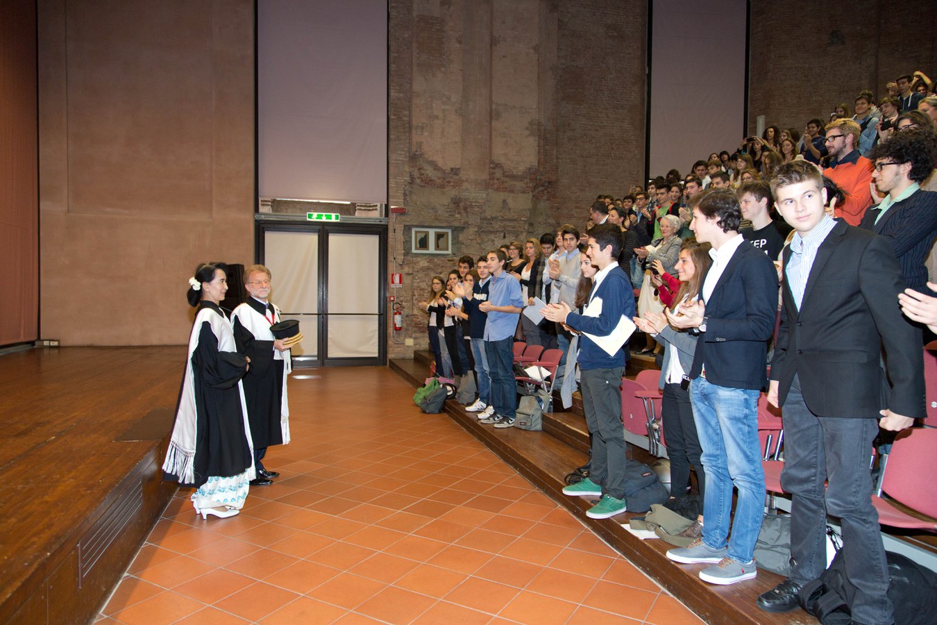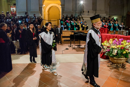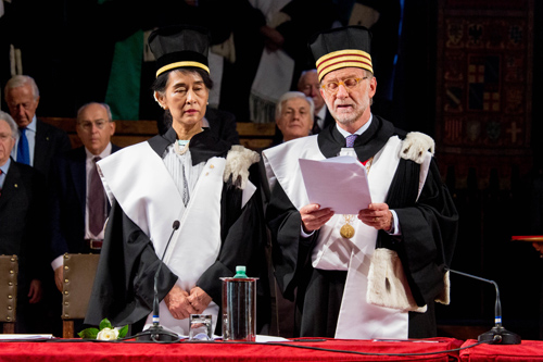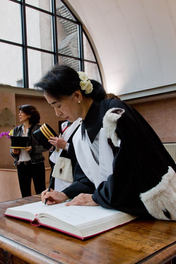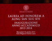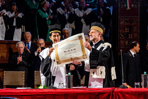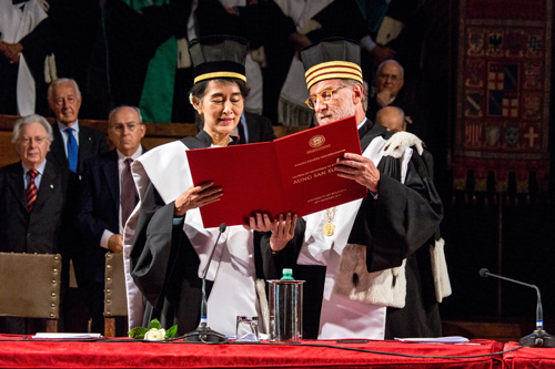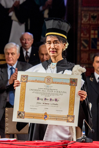 Il 30 ottobre 2013 in Aula Magna la cerimonia che ha aperto il 926esimo Anno Accademico dalla fondazione dell’Alma Mater. Ospite d'onore la leader birmana, Premio Nobel per la Pace nel 1991, che ha ricevuto il riconoscimento che l’Ateneo le ha attribuito nel 2000. In un'Aula Magna gremita, Aung San Suu Kyi ha ricevuto dalle mani del Rettore Ivano Dionigi la Laurea ad honorem in Filosofia che l'Università di Bologna le assegnò quando la leader birmana era agli arresti domiciliari.