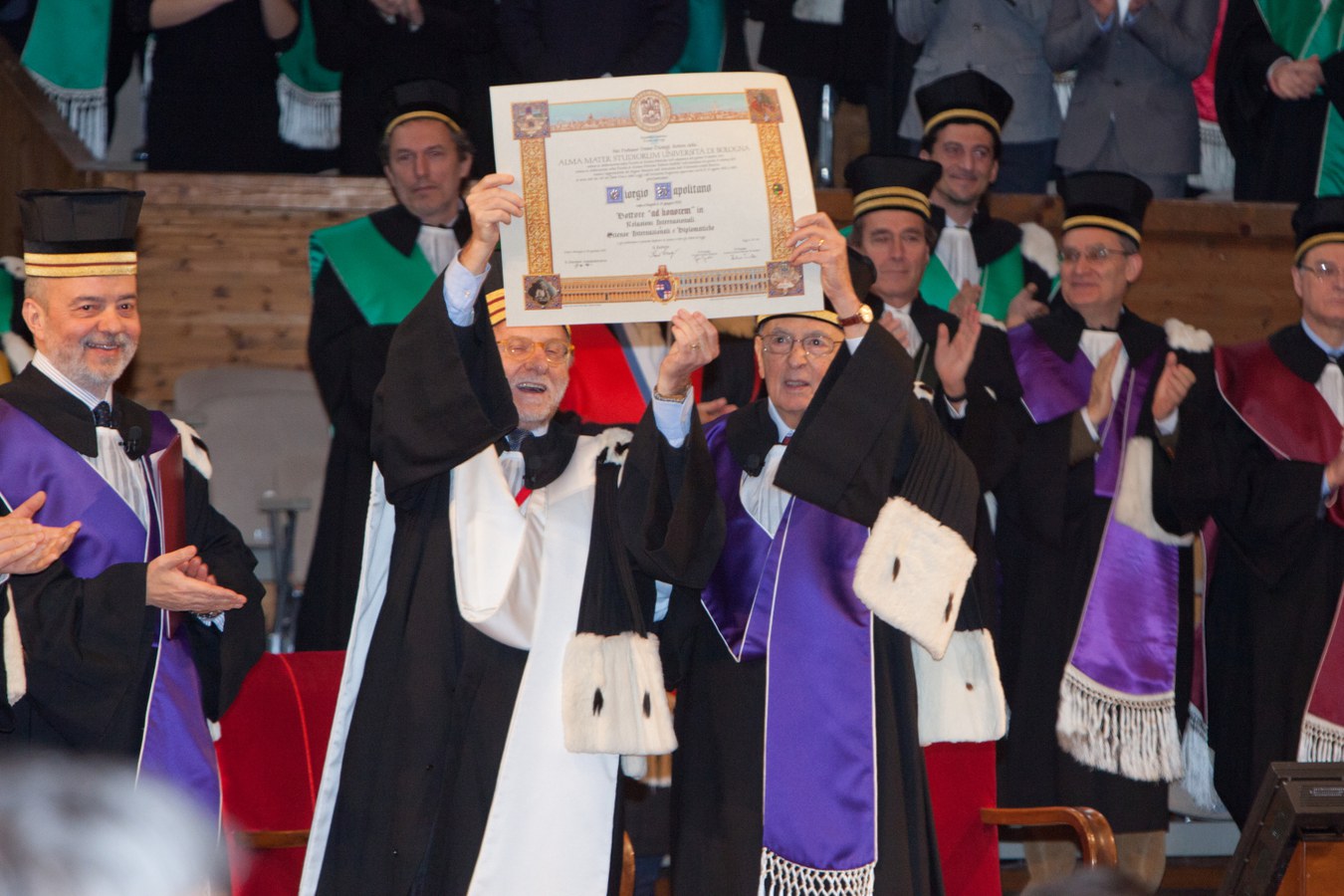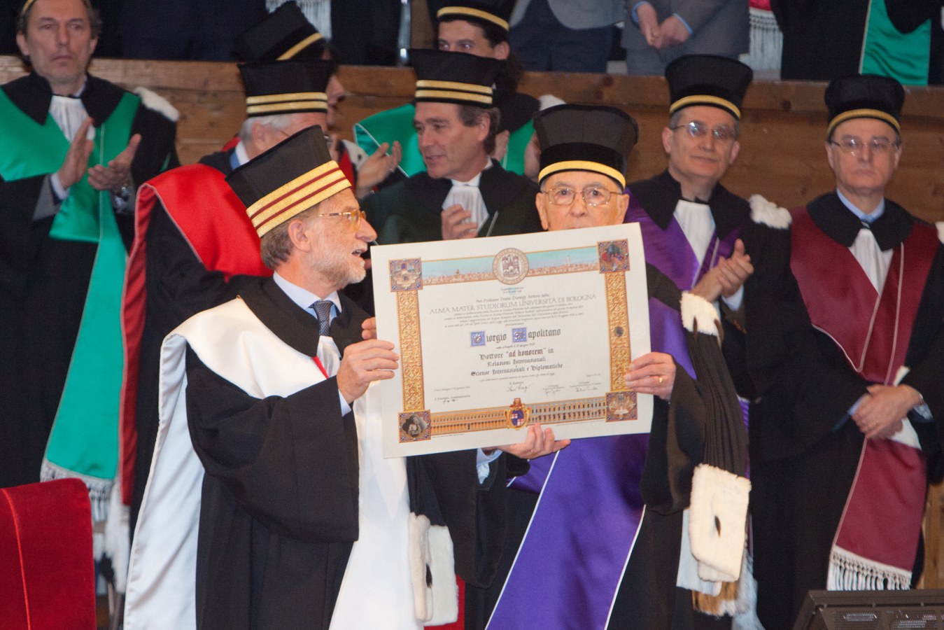 Il 30 gennaio 2012 in Aula Magna la cerimonia che ha aperto il 924esimo Anno Accademico dalla fondazione dell’Alma Mater. Ospite d'onore il Presidente della Repubblica Giorgio Napolitano che ha ricevuto la laurea ad honorem in Relazioni internazionali e Scienze internazionali e diplomatiche, ed è intervenuto con una lezione dottorale sul tema "Le difficoltà della politica (in Europa e in Italia)".