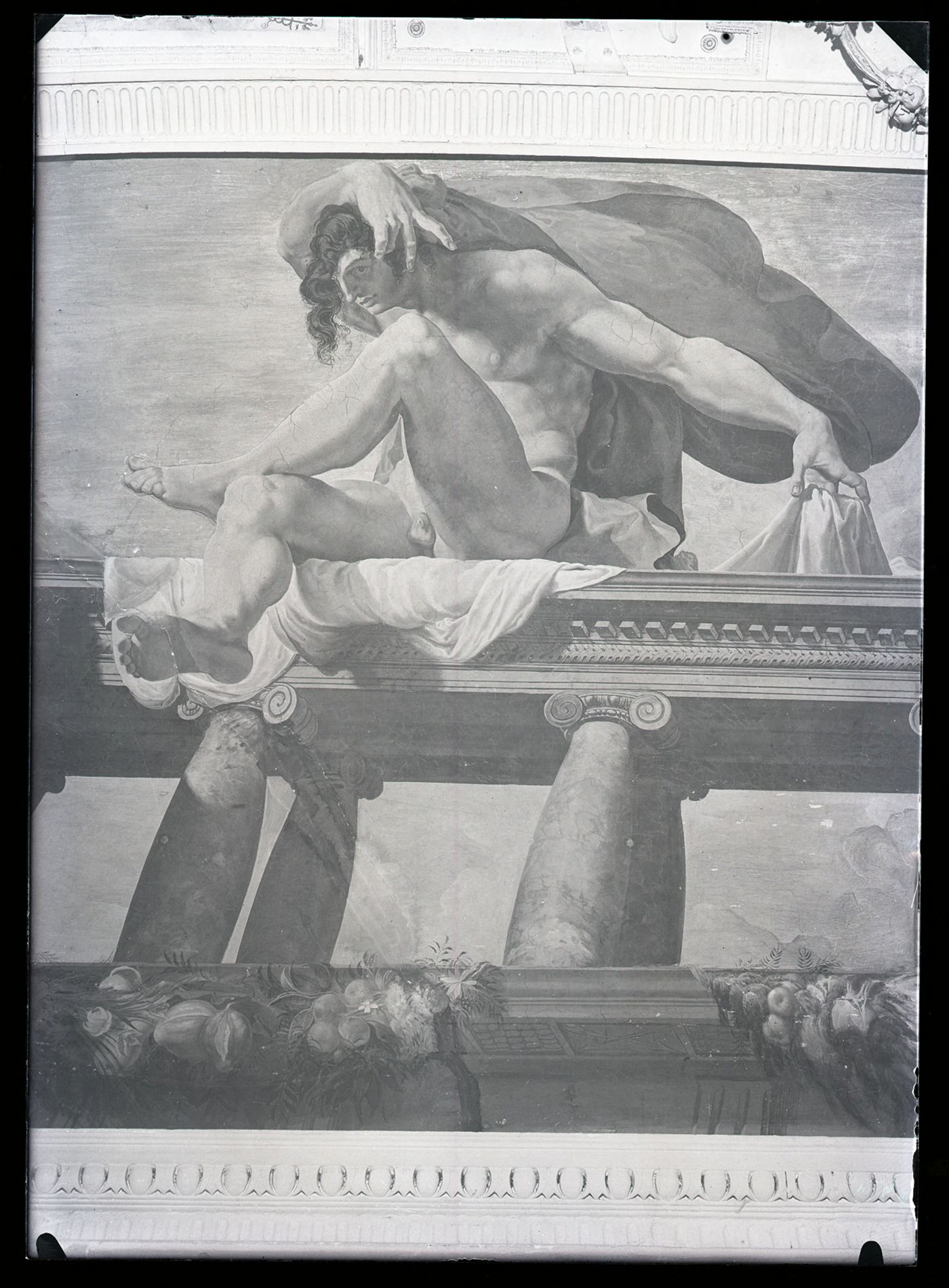 Descrizione: [Figura di ignudo, particolare del fregio decorativo della volta, Sala di Ulisse: Accademia delle scienze: via Zamboni 31, Bologna / Anonimo ; Pellegrino Tibaldi]. - [esecuzione 1931-1938]. - 1 fotografia: vetro, negativo, b/n ; 18 x 13 cm.