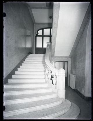 Descrizione: [Biblioteca universitaria: Nuova scala in marmo - A. IX / Anonimo]. - [1938]. - 1 fotografia: vetro, negativo, b/n ; 24 x 18 cm.