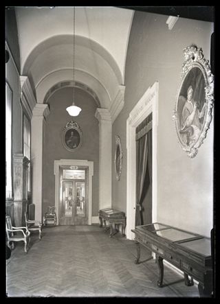 Descrizione: [Biblioteca universitaria: Atrio di accesso alla grande sala di lettura e al Museo Marsiliano (rest. A. XVI) / Anonimo]. - [1938]. - 1 fotografia: vetro, negativo, b/n ; 18 x 13 cm.