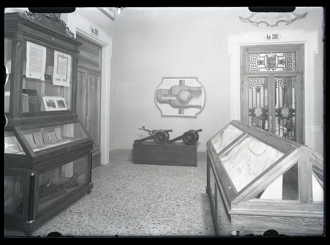Descrizione: [Biblioteca universitaria: Museo Marsiliano, Sala dei modelli di fortificazioni e strumenti guerreschi - A. IX / Anonimo]. - [1938]. - 1 fotografia: vetro, negativo, b/n ; 13 x 18 cm.