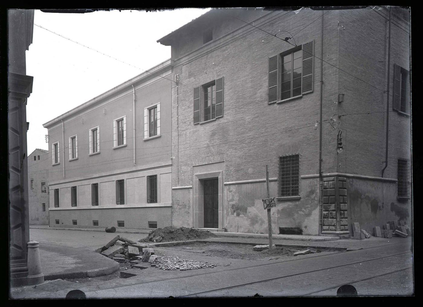 Descrizione: [Sede del GUF: via Belmeloro 1, Bologna / Anonimo ; Guido Zucchini, Luciano Petrucci]. - [esecuzione 1933]. - 1 fotografia: vetro, negativo, b/n ; 13 x 18 cm.
