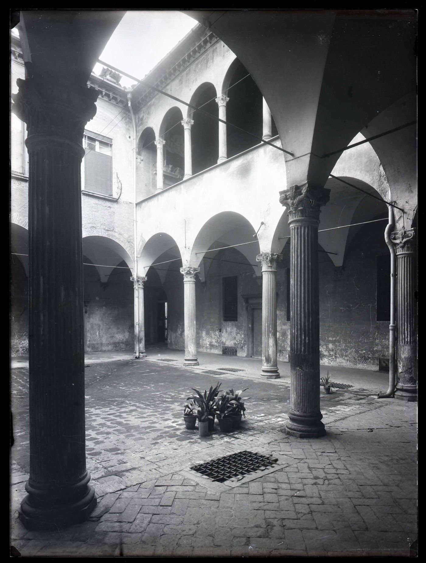 Descrizione: [Cortile e loggiato: palazzo Salaroli Paleotti prima del restauro: Bologna / Anonimo]. - [esecuzione 1932 circa]. - 1 fotografia: vetro, negativo, b/n ; 24 x 18 cm.