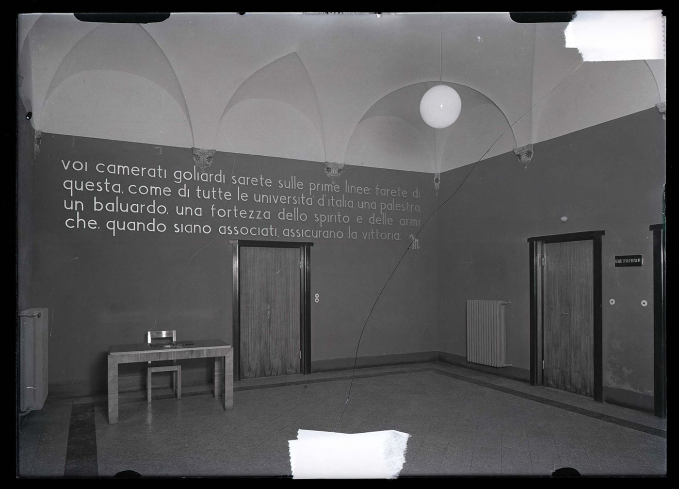 Descrizione: [Sala colloqui: sede del GUF (via Belmeloro 1) / Anonimo]. - [1938]. - 1 fotografia: vetro, negativo, b/n ; 13 x 18 cm.