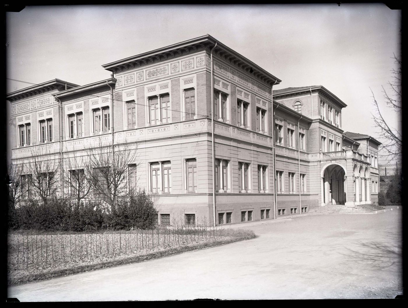 Descrizione: [Fianco e facciata del fabbricato principale: Facoltà di Agraria: via Filippo Re 6, Bologna / Anonimo]. - [esecuzione 1948-1955]. - 1 fotografia: vetro, negativo, b/n ; 18 x 24 cm.